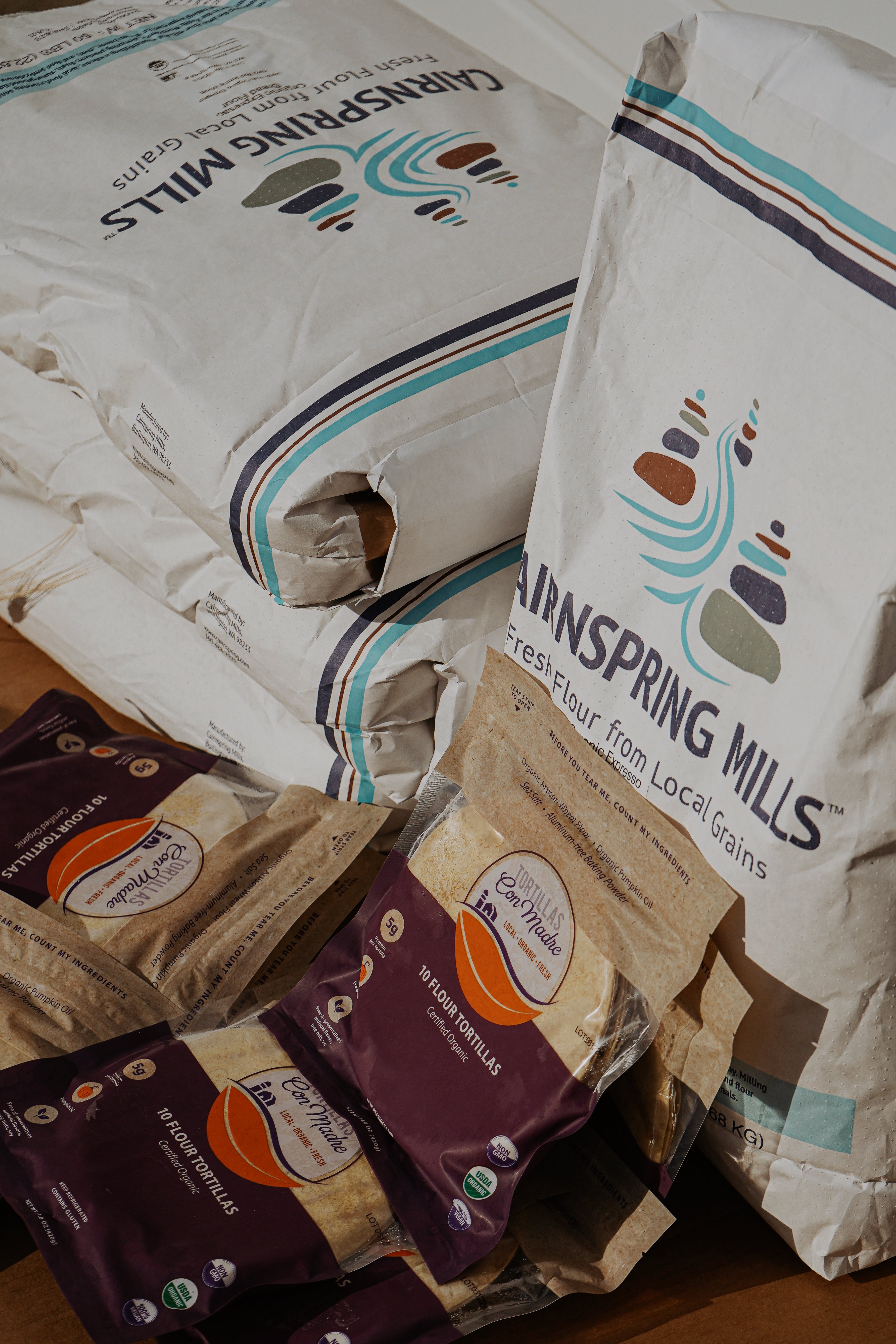 We proudly source our flour from Cairnspring Mills because their commitment to local agriculture aligns perfectly with our own values. Their exceptional quality is recognized throughout Washington State, and their grains play a vital role in the superior taste and texture of our tortillas.